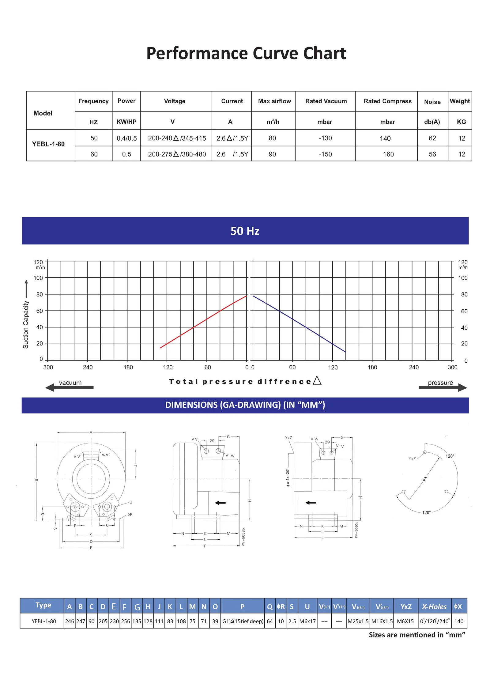 Static Pressure : 140 mbar